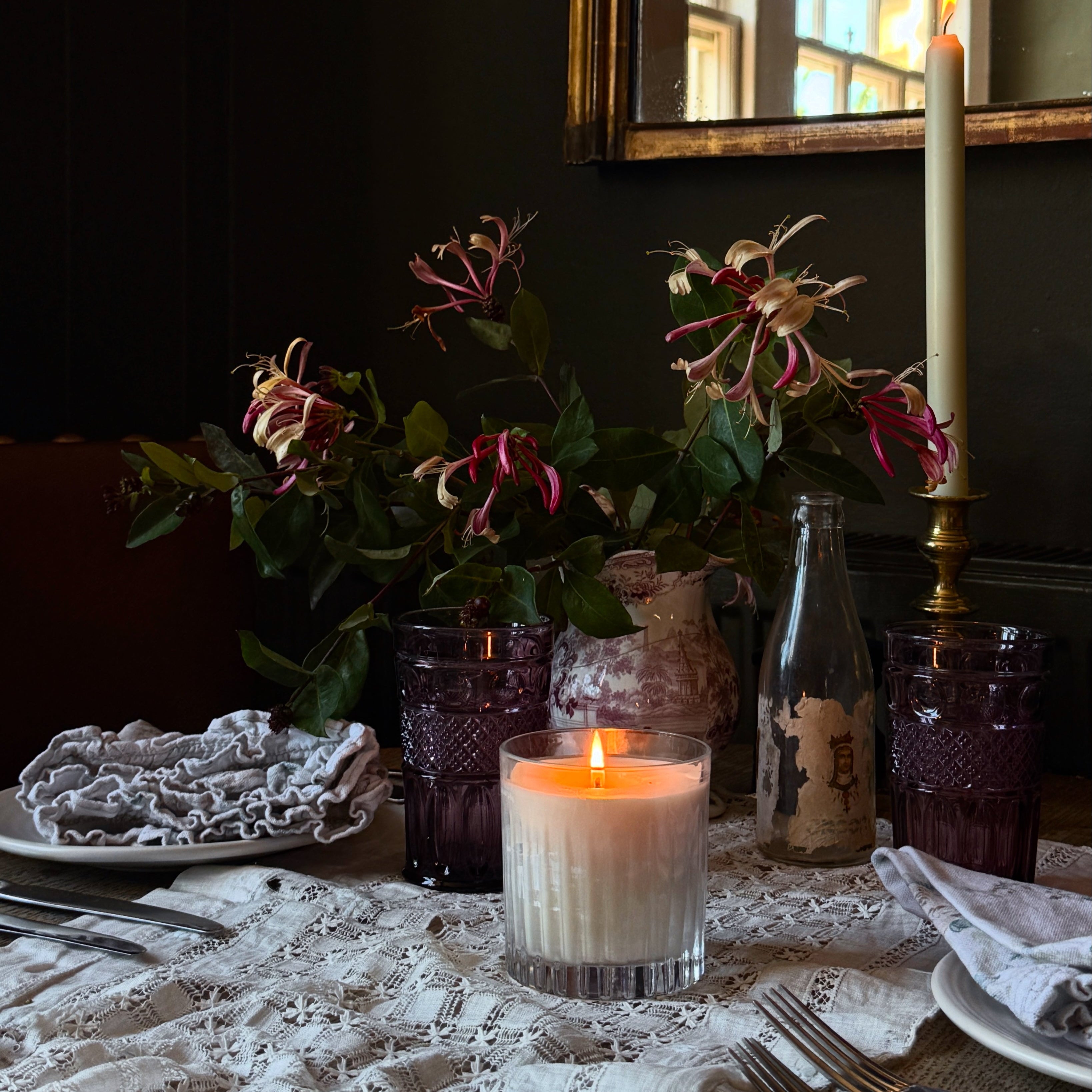 Our natural, essential oils do not project as strongly as artificial fragrances. Our candles don't greet you at the door but pull you in for a more intimate conversation.